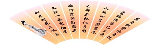 扇页上拿花锄的侍女,是红楼梦中黛玉葬花的经典形象。在第一轮谜题中, 办公桌上的红楼梦也是辅助提示。