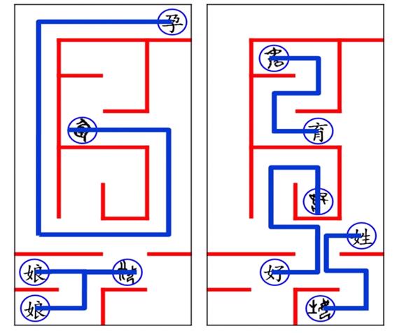 然后按照提示,用最简单路线将对应的简体字和古文连接在一起,其路径就是密码数字。将数字按照从大到小排列,就得到密码: 96542