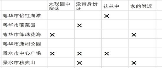 由此可以排除没有花的粤华市怡红海滩和景水市中心广场。