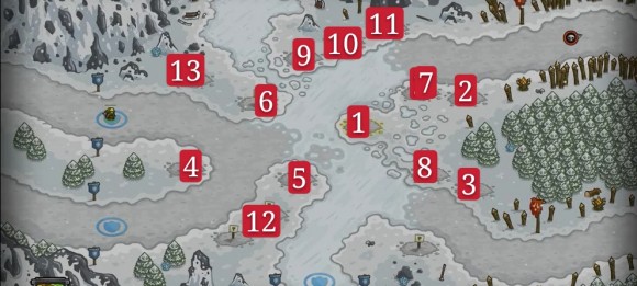 开局给1000金币(终于是1000了)在右边造一个特斯拉,英雄选小马哥,然后开局。第一波是一大群土狗,小马哥输出,援兵阻拦。特斯拉不要升级,先买位于右下角的兵营,让他呆在上面一块空地上。买完兵营再去买上面一个兵营,再买下面的炮塔。然后在男巫那个位置买一个兵营。第二波会来雪橇巨魔,用援兵或者兵营阻拦,然后输出火雨尽早交出去,将特斯拉升好后在左边买一个炮塔。第五波会来石像鬼和狗群,用特斯拉杀之即可。第七波来一个巨魔伐木者,后面会跟三个巨魔战士,用援兵把他们分开,然后逐个击破。奥术先点秒杀,这样可以把他们的主力军全部杀掉,后面按照顺序图做就行。后面就来阿古克汗,前面的男巫先不要点石头人,等boss来了以后(哼哼哼)