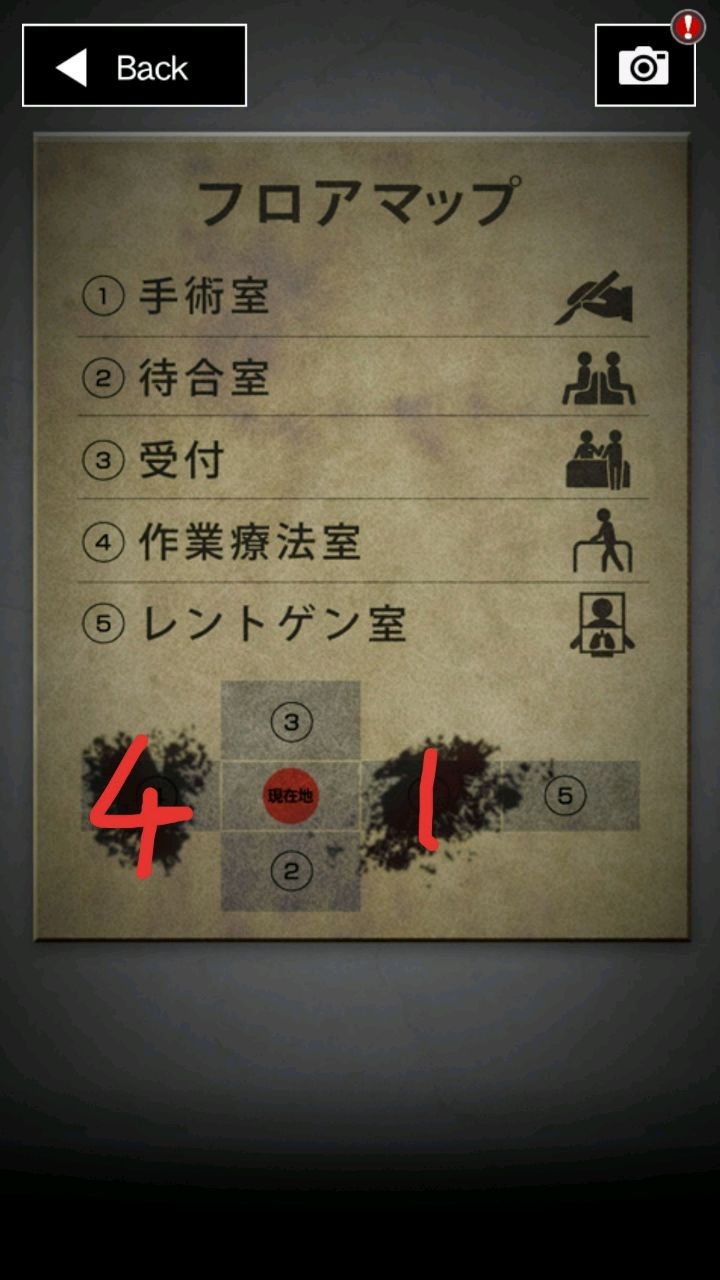 进入房间,第一个房间的按钮先别按,调查板子和墙壁的纸,得知所在地。每个房间都有一个红色按钮根据纸上12345的顺序按,去右边房间书架上发光的东西,调查一下得到绘本,顺便按一下红色按钮。