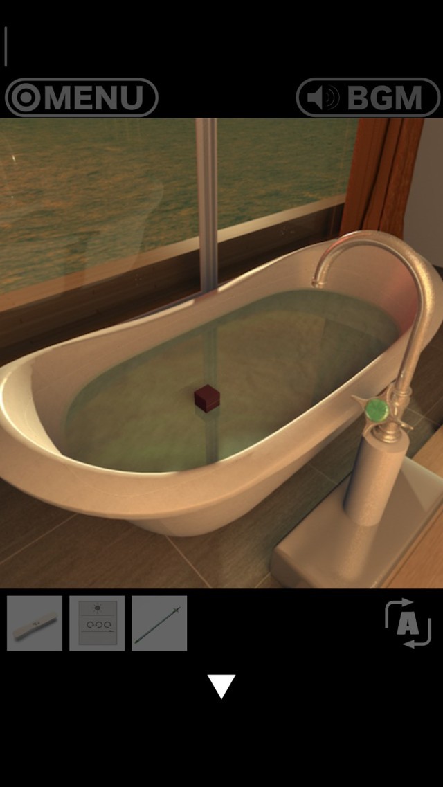 14、把球放入浴缸,得到一个盒子,见下图3,转动盒子发现有一个孔,用冰棒的棒打开盒子,得到一把钥匙