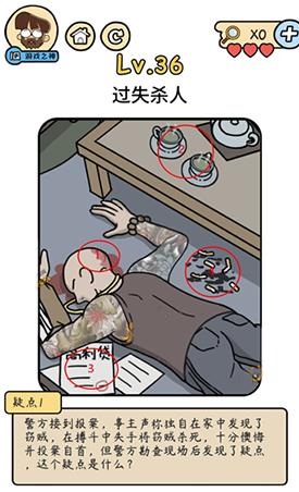 过失杀人是脑洞大大大脑洞侦探社第36关的问题,很多玩家还不知道怎么过答案是什么,为了让大家快速通关,小编带来了脑洞大大大脑洞侦探社第36关攻略。