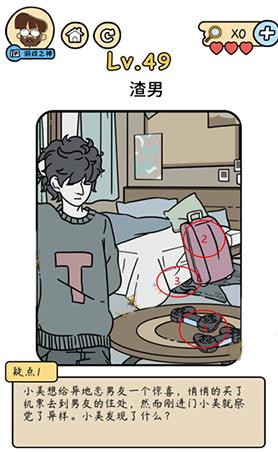 渣男是脑洞大大大脑洞侦探社第49关的问题,很多玩家还不知道怎么过答案是什么,为了让大家快速通关,小编带来了脑洞大大大脑洞侦探社第49关攻略。