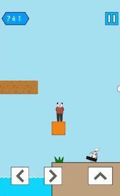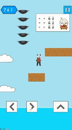 2.之后上到第二个横条触发飞锅立马下来,随后往前走,小草上方有一个隐藏方块。