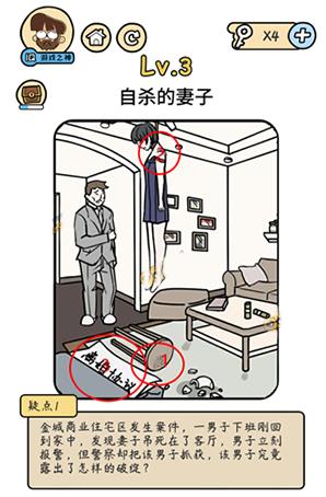 自杀的妻子是脑洞大大大脑洞侦探社第3关的问题,很多玩家还不知道怎么过答案是什么,为了让大家快速通关,小编带来了脑洞大大大脑洞侦探社第3关攻略。