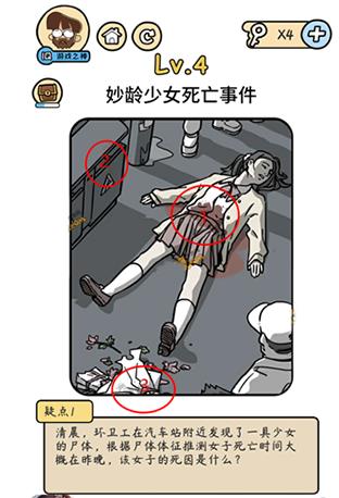 妙龄少女死亡事件是脑洞大大大脑洞侦探社第4关的问题,很多玩家还不知道怎么过答案是什么,为了让大家快速通关,小编带来了脑洞大大大脑洞侦探社第4关攻略。