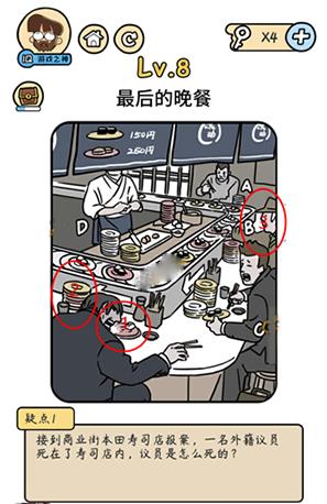 最后的晚餐是脑洞大大大脑洞侦探社第8关的问题,很多玩家还不知道怎么过答案是什么,为了让大家快速通关,小编带来了脑洞大大大脑洞侦探社第8关攻略。