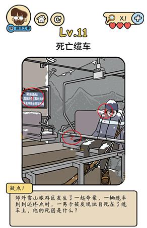 死亡缆车是脑洞大大大脑洞侦探社第11关的问题,很多玩家还不知道怎么过答案是什么,为了让大家快速通关,小编带来了脑洞大大大脑洞侦探社第11关攻略。