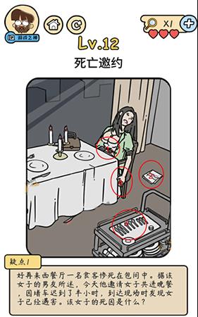 死亡邀约是脑洞大大大脑洞侦探社第12关的问题,很多玩家还不知道怎么过答案是什么,为了让大家快速通关,小编带来了脑洞大大大脑洞侦探社第12关攻略。
