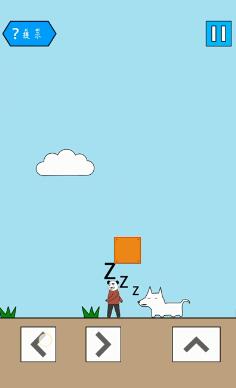 这关很简单一直往前走到狗狗面前跳一下,触发隐藏方块然后跳过去就行了。