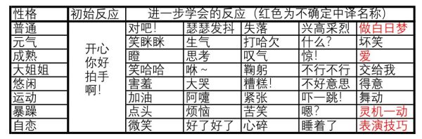 不同性格的小动物会教你不同的人物反应,具体如下: