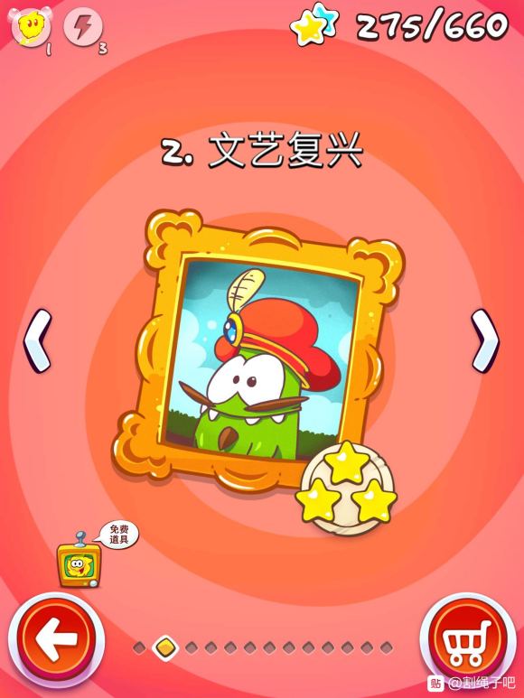 割绳子玩穿越《CutTheRopeTimeTrave》第二章文艺复兴三星攻略