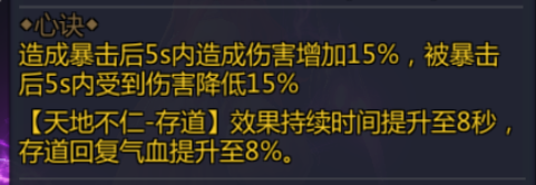 【天地不仁-存道】效果持续时间至提升8秒,存道回复气血提升至百分之8%