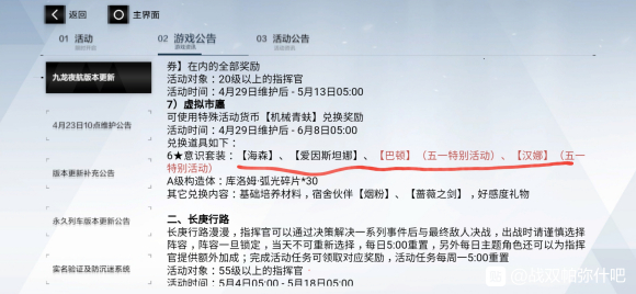 1.2 活动预告中汉娜和巴顿说是五一活动限定,而五一活动礼包基本是5月1号到14号,持续14天。很有可能我们只能在这14天内才能换汉娜和巴顿。但是4月29号到30号我们可以存着兑换币不用,所以相当于能刷汉娜和巴顿的天数应该是16天。