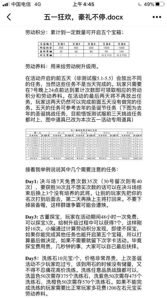 之所以把这个系列放到最后介绍是为了突出其重要性,不看不知道,一看吓一跳。如果把29,30号过关,30号决斗场,30号战役副本放到5.1凌晨打,还可以多拿28个劳动养料。