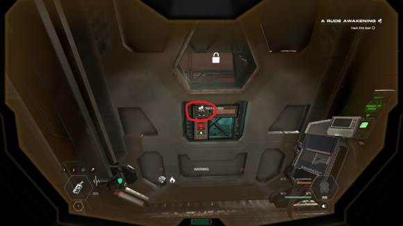 手持黑客工具对着红圈位置处的那块矩形按F解除锁定