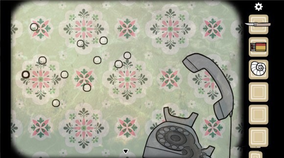 到了“鱼”房间之后,首先手疾眼快的拿走一个海螺,然后点开电话,发现里面冒出来了一些泡泡,这可以说是本游戏的第一个小难点,由于没什么其他提示,正确解法在这里就直接放出来了。