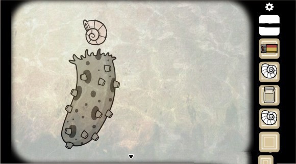 emmm,然后再转到柜子这一面,发现了一个类似于海参(?)的物体,这里需要按下去海参(反正就这么叫吧)上面所有没有深色圈包围的凸起,这样奇奇怪怪地把突起全按下去之后,海参瞬间爆炸,吐出了第三个海螺,而第四个海螺就在浮在水中的盒子里。