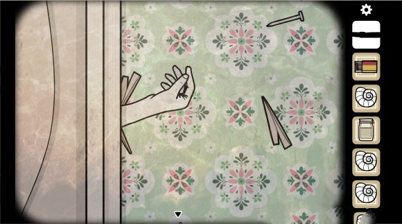 之后转到壁钟那一边,用刀刺破玻璃瓶,得到海螺。(这里没有截到图,如果有这里有问题的朋友我会在之后再发一下图),注意这里要冲着有十字叉的地方刺。