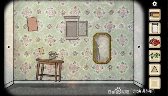 而在右面的那幅画可能有些难认,不过看壁纸的颜色和样式也能很明白的看出这是悖论的房间,而至于后方的图案,应该是那扇Dale喝药和抽烟的镜子。