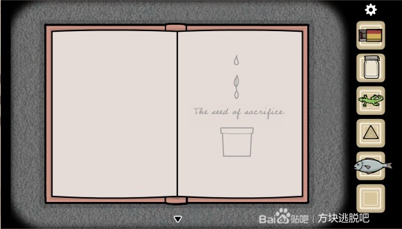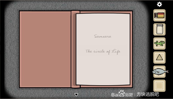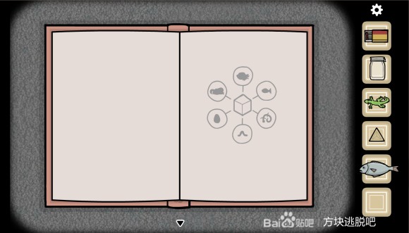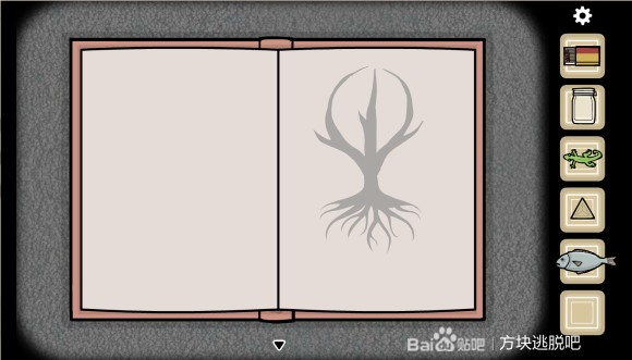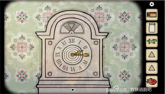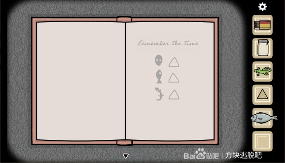 到鱼房间之后,我们就转动之后直接点进在左面浮着的那本红书,发现一个时钟图案,按照图案的样子把壁钟调好,获得第二个三角钥匙。