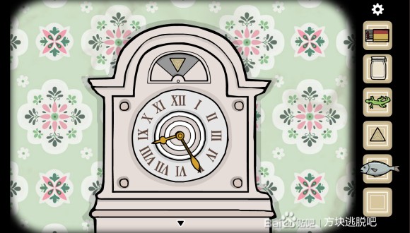 调好时间,得到三角钥匙。用三块三角钥匙打开壁钟。