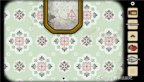 然后我们就去到各个房间,然后根据之前红宝书里面的提示——镜子不会说谎,拽动四个房间之中的镜子,找到了这四个红色图案。
