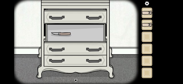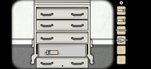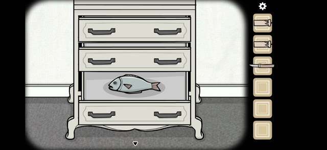 调查抽屉,在滴二三四格抽屉里找到刀、咸鱼、一根蜡烛。