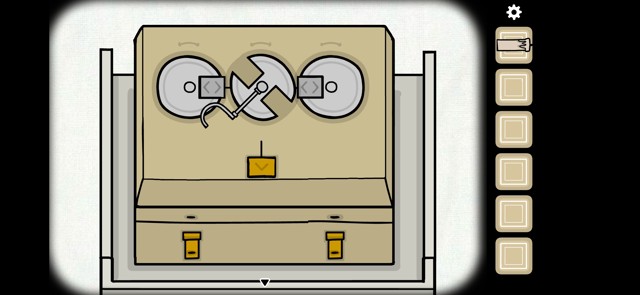 这个密码锁并不复杂,旋转左边的机关180°,右边的机关180°。移动两个滑块,转开钩子,向下移动金色机关即可打开。