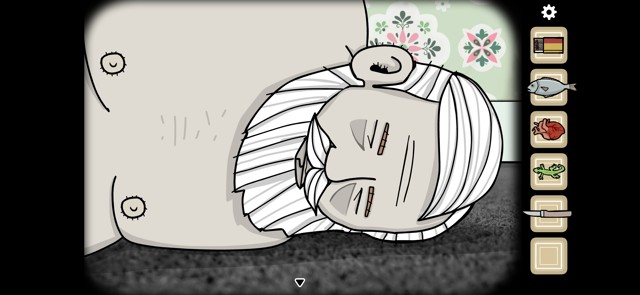 来到尸体这边,打开男人的嘴巴,爬进去。