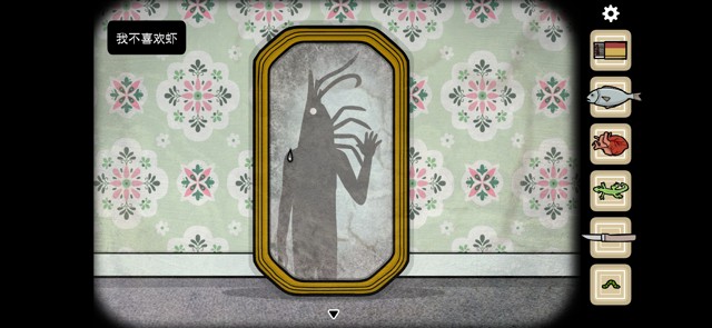 镜子里的我,变成了一只虾。点击镜子上的水滴,得到水元素。
