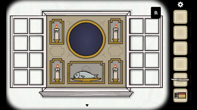 打开抽屉,第二格是小刀,第三格是一条鱼,第四格是第三支蜡烛