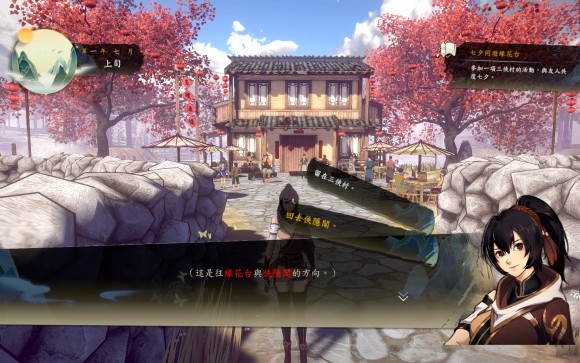 然后去茶坊,和左边的姑娘对话,帮她指路,