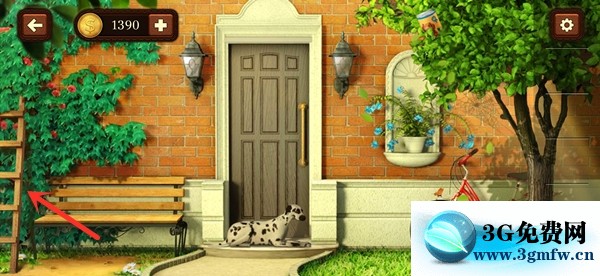 将梯子放在右侧树下,然后点击获得树上的狗粮。