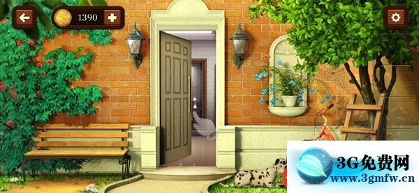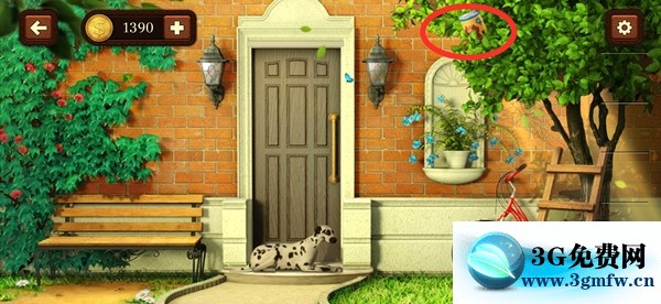 将狗粮放在红色的食盆里,狗狗就会来吃了。开门,过关。