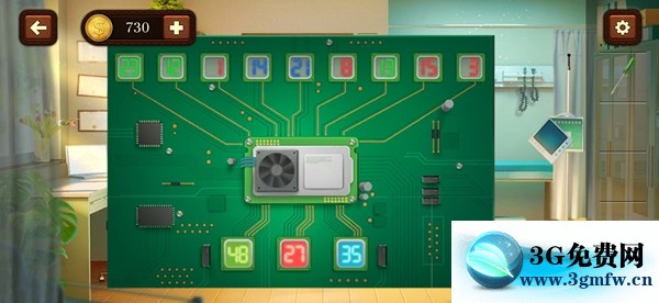点击屏幕部分,看到电路板,破解它(改变上面数字的颜色,使用相加等于下面对应数字颜色,如下图),完成后,用螺丝钳再把屏幕装回去,屏幕上出现了数字。