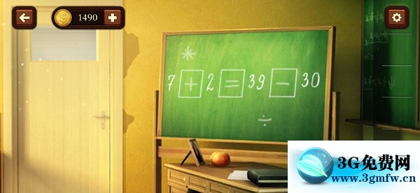 完成黑板上的题目,使等式成立,如下图。完成后,开门过关。