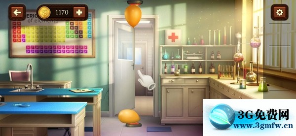 将大的气球,放在门顶部的按钮处,小的放在下面的按钮(水比较重可以压住下面的按钮,氦比较轻可以飞起来顶住上面的按钮)。开门过关。