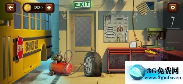 开动机器,将轮胎打满气,装回大巴车上,再用拧子拧紧螺丝。点击大巴车,开动走。