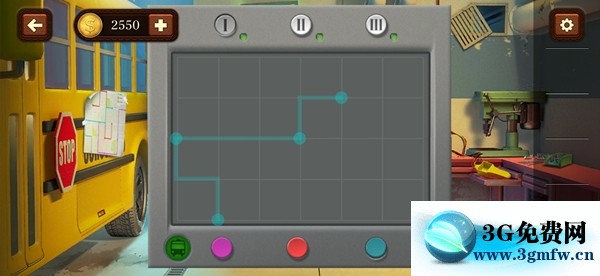 点击中间桌子上的机器。切换到线路1,点击蓝色,根据线路完成连线,注意每个圆圈处要等待几秒。线路2对应红色,线路3对应紫色。