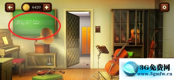 帮我开开门第107关怎么过? 帮我开开门攻略第107关 首先在场景中,点击左上角的黑板观察。 然后点击左侧的钢琴上的谱子观察。 根据黑板上五线谱来推测,密码为:31224。输入密码,开门过关。 老友网www.andlaou.com免费为你分享