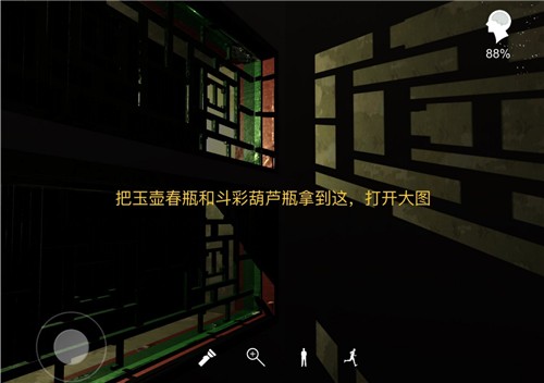 5.月示术、瓶中字:把“玉壶春瓶”和“斗彩葫芦瓶”拿到有尸体的房间,站在月光下,点开大图