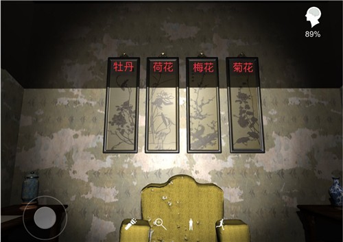 6.亚里山大令、古拉格令、南书房令:关联关联出“谜题”后,将四幅画按照“牡丹荷花梅花菊花”的顺序重新挂上去,(根据“水浒满江红”写菊花,“月示术”写牡丹,“镜中字”写荷花,“瓶中字”写梅花,排列顺序按照成诗朝代)
