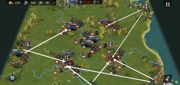 队友会攻击两侧未被拿下的红圈城,每个国家会攻击临近两座城,被拿下后前往下一座。如果临近两座城被拿下则会试图从中间钻过去