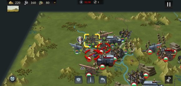 左边四个位置不能变,尤其是重骑。两门炮打要塞,装甲车收割,出了追击打一下野战炮。