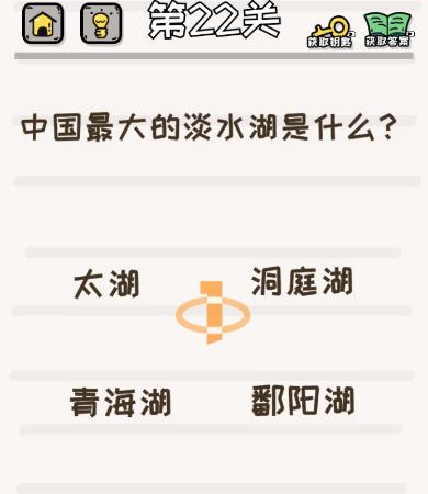 中国最大的淡水湖是哪个是《挑战小学生》第22关的问题,很多网友不知道答案是什么,下面小编给大家带来挑战小学生第22关攻略。