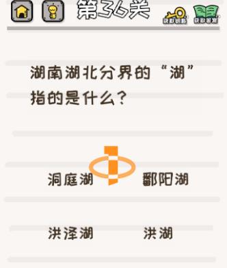 湖北湖南分界的湖指的是什么是《挑战小学生》第36关的问题,很多网友不知道答案是什么,下面小编给大家带来挑战小学生第36关攻略。 问题:湖北湖南分界的湖指的是什么? 答案:洞庭湖。 老友网www.andlaou.com免费为你分享