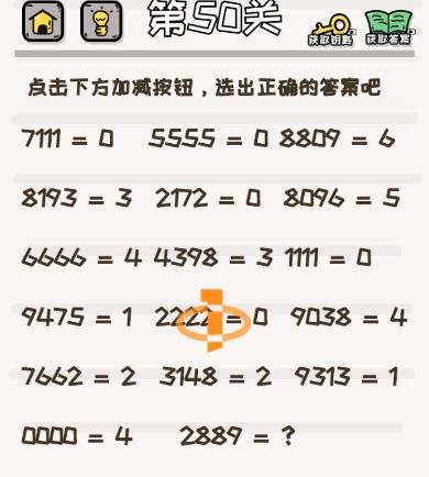 点击下方加减按钮选出正确的答案吧是《挑战小学生》第50关的问题,很多网友不知道答案是什么,下面小编给大家带来挑战小学生第50关攻略。
