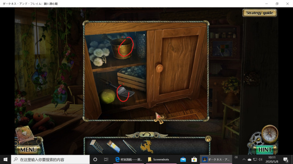 14、窗户,用锅炉挑起玻璃窗,再升上去,找到玻璃球1、汤勺。